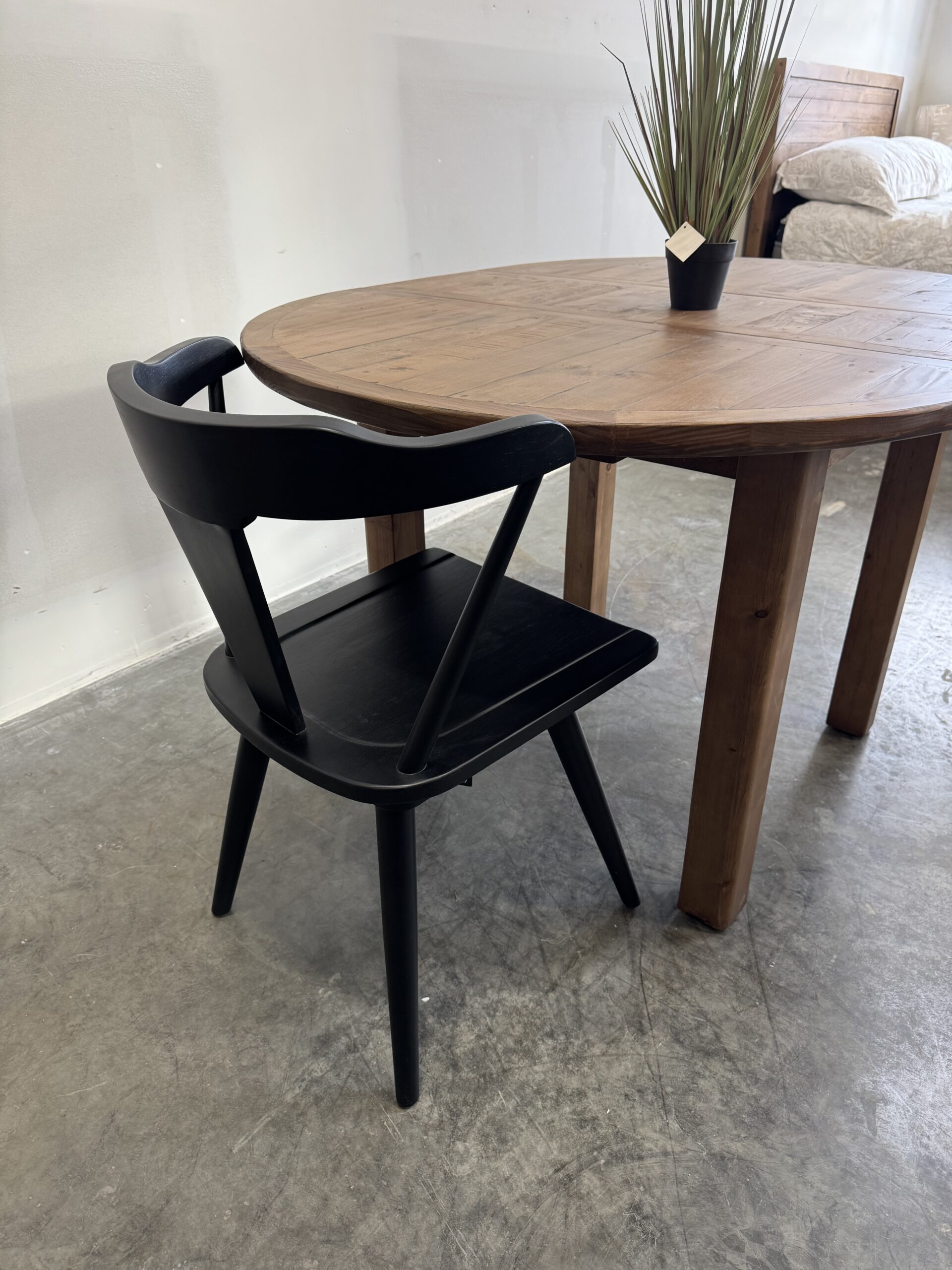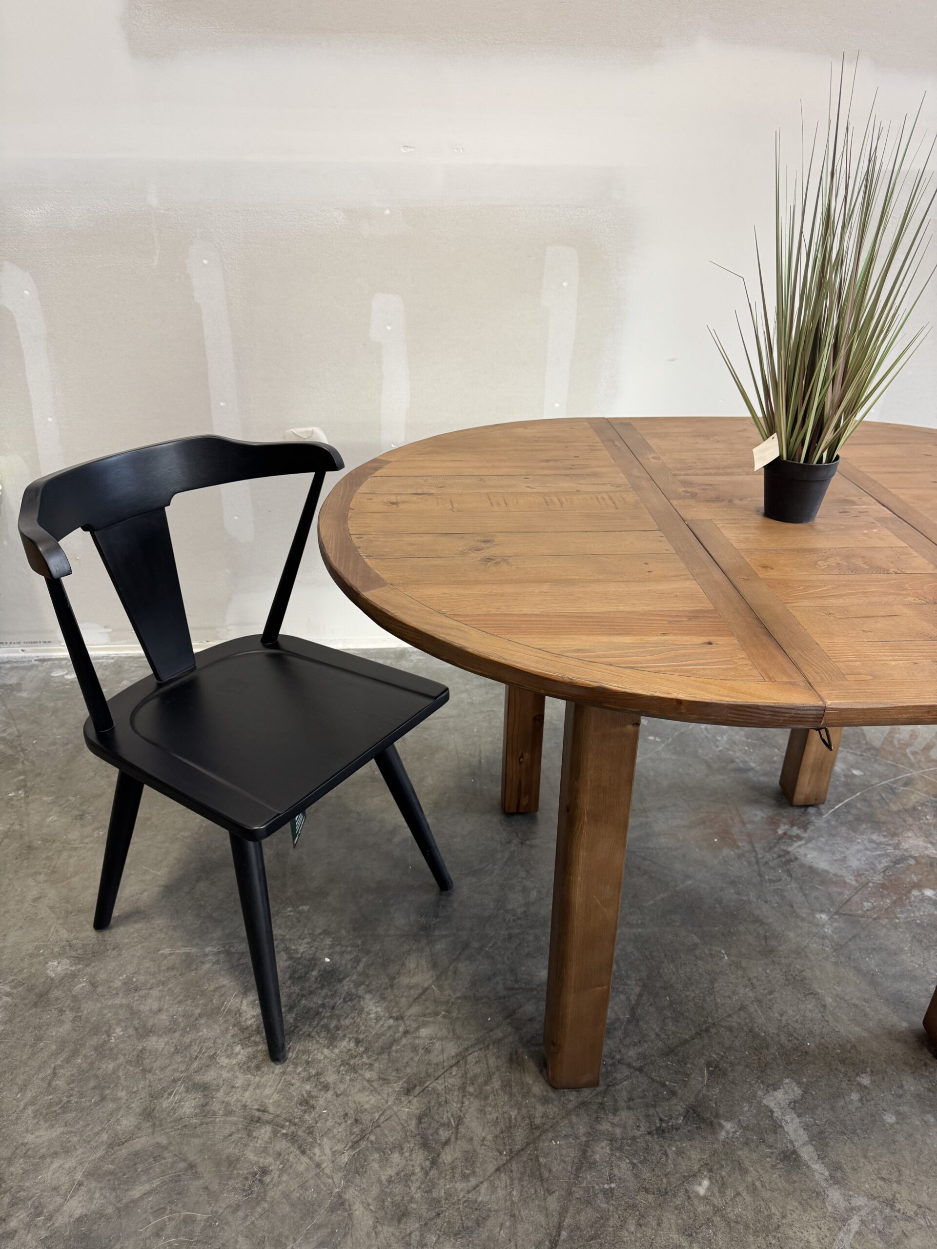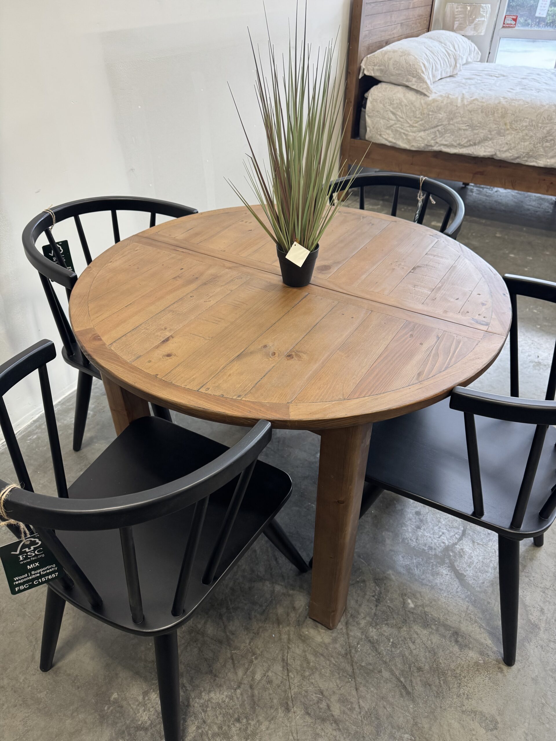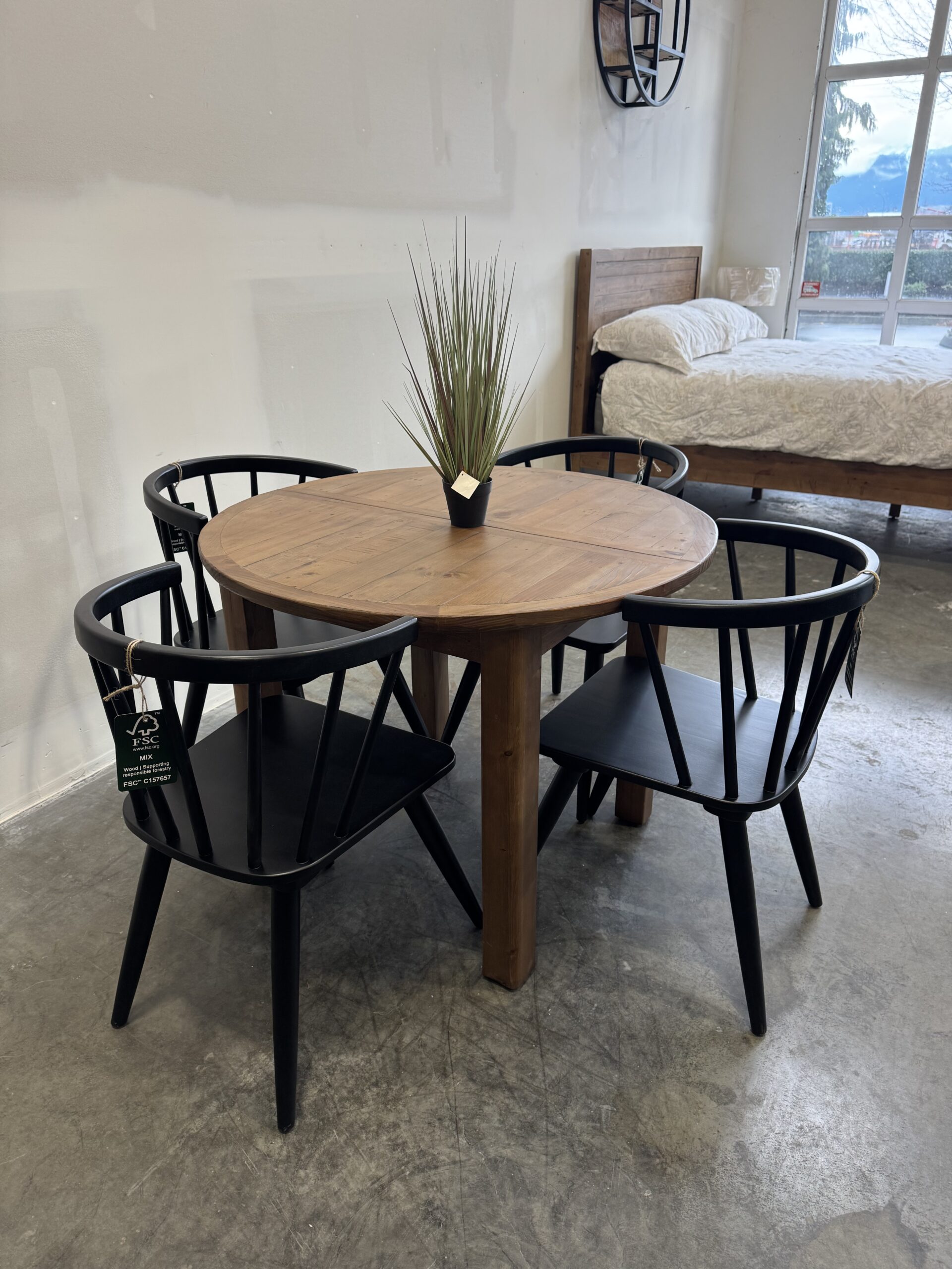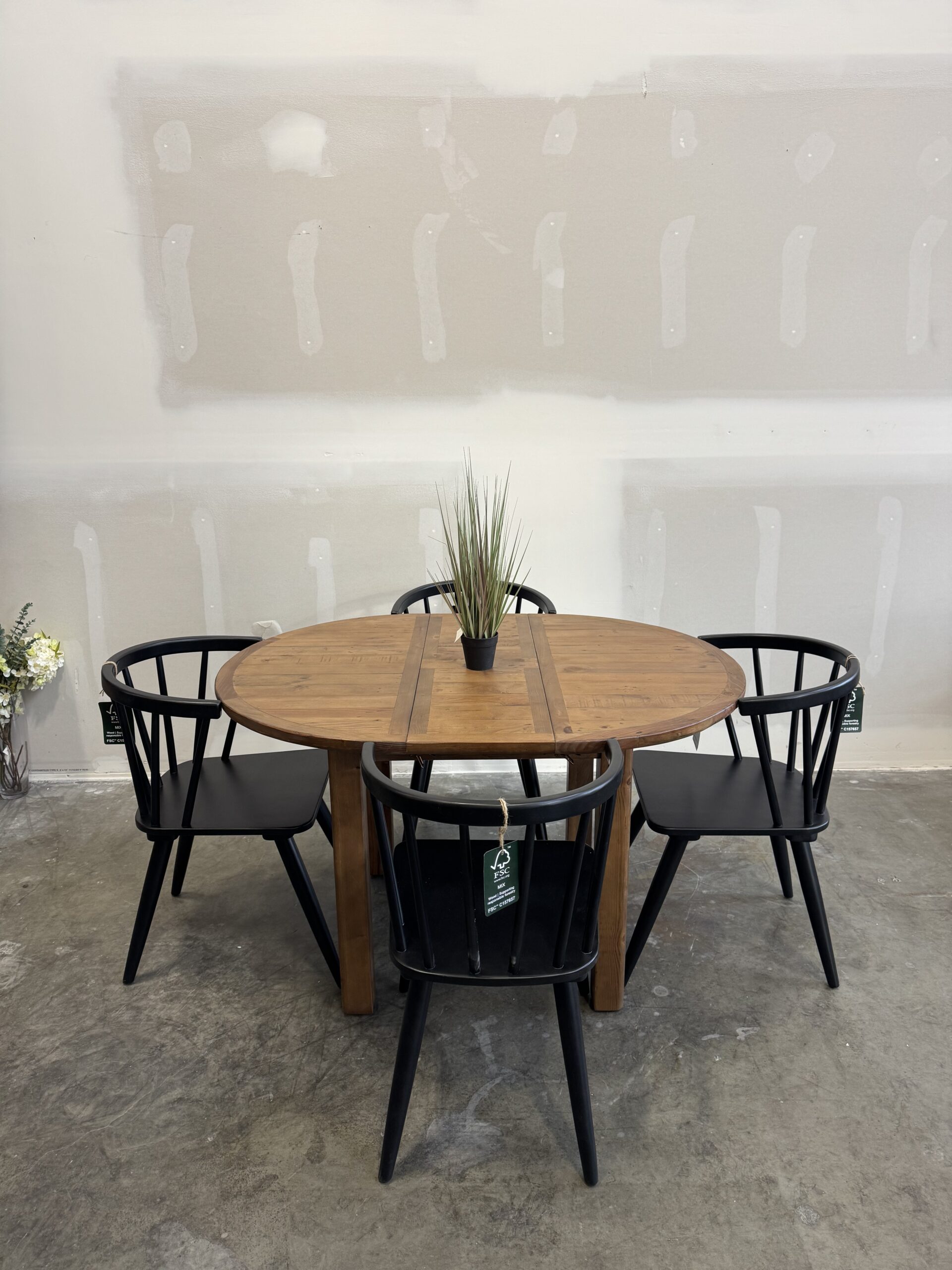Set comprises of 1 x table and 4 x Flea Market chairs with padded seat – in cashew