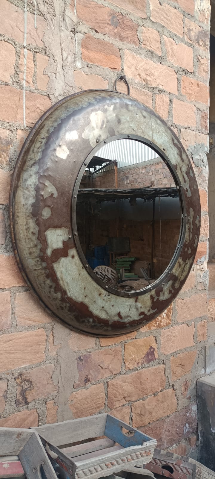 Round Recycled Metal Mirror